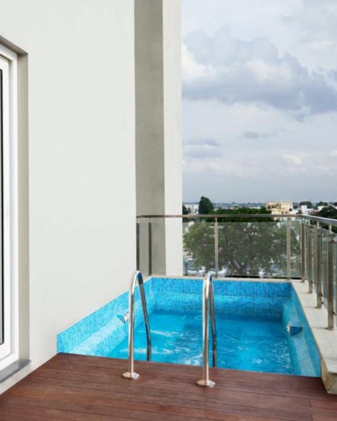 This private villa in Jigani features an infinity jacuzzi with breathtaking views, a rooftop bar perfect for evenings under the stars, and a private chef who can prepare meals tailored to your taste. With 24/7 housekeeping and meticulous attention to detail, every aspect of your stay is handled with care.